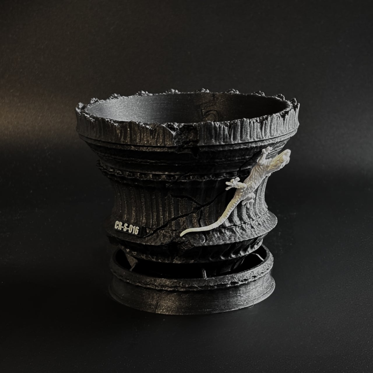 風化した石柱を思わせる重厚な鉢肌に、古鉄の風合い。
